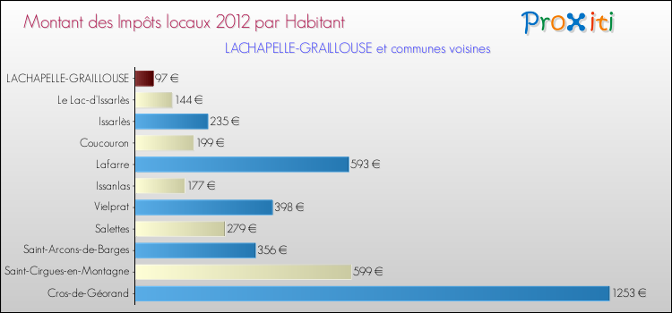 A Lachapelle-Graillouse, en 2012 les impôts locaux par habitant sont donc plus bas de 60.89 % que pour des communes similaires.