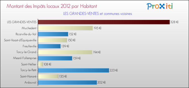 A Les Grandes-Ventes, en 2012 les impôts locaux par habitant sont donc plus bas de 4.93 % que pour des communes similaires.