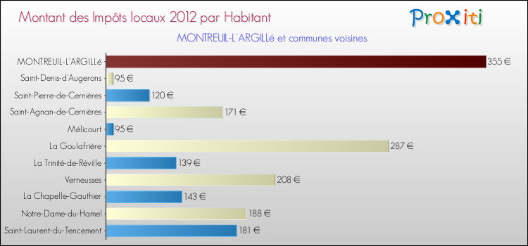 A noter : la valeur moyenne des impôts locaux dans les communes françaises similaires à Montreuil-l'Argillé était de 345 € par habitant, en 2012.