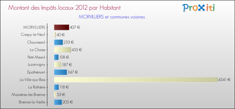 A Morvilliers, en 2012 les impôts locaux par habitant sont donc plus élevés de 68.18 % que pour des communes similaires.