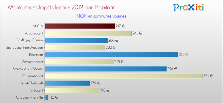 A Nijon, en 2012 les impôts locaux par habitant sont donc plus bas de 11.43 % que pour des communes similaires.
