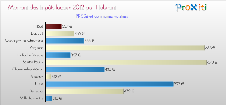 A noter : la valeur moyenne des impôts locaux dans les communes françaises similaires à Prissé était de 277 € par habitant, en 2012.