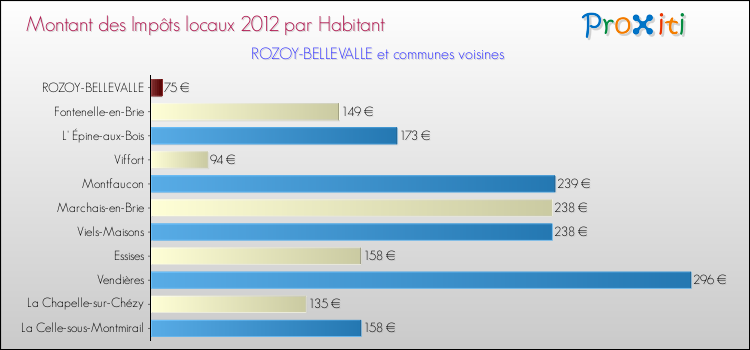 A Rozoy-Bellevalle, en 2012 les impôts locaux par habitant sont donc plus bas de 69.39 % que pour des communes similaires.