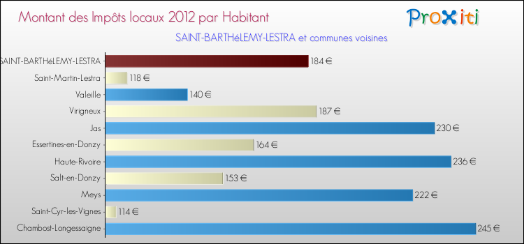 A Saint-Barthélemy-Lestra, en 2012 les impôts locaux par habitant sont donc plus bas de 33.57 % que pour des communes similaires.