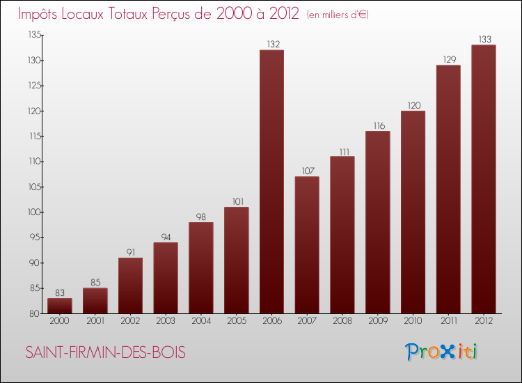 Evolution des Impôts Locaux perçus par la commune de SAINT-FIRMIN-DES-BOIS de 2000 à 2012