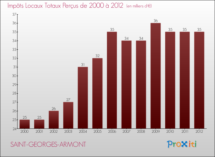 Evolution des Impôts Locaux perçus par la commune de SAINT-GEORGES-ARMONT de 2000 à 2012