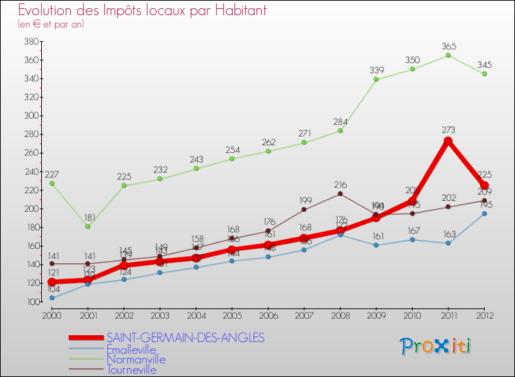 Evolution des Impôts Locaux pour SAINT-GERMAIN-DES-ANGLES de 2000 à 2012