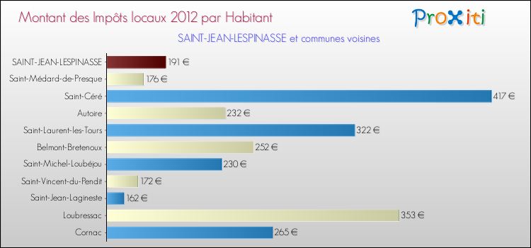 A Saint-Jean-Lespinasse, les impôts locaux par habitant ont donc augmentés de 46.92 % entre 2000 et 2012.