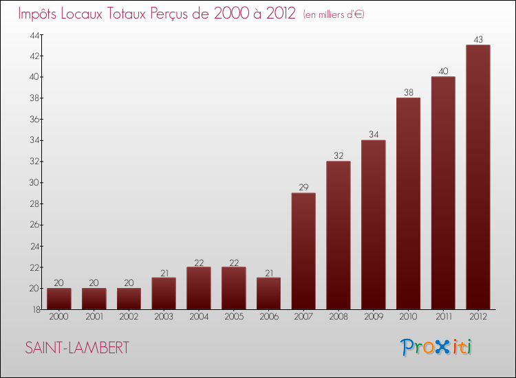 Evolution des Impôts Locaux perçus par la commune de SAINT-LAMBERT de 2000 à 2012