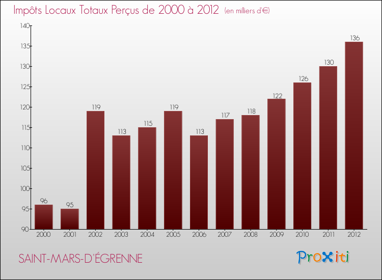 Evolution des Impôts Locaux perçus par la commune de SAINT-MARS-D'ÉGRENNE de 2000 à 2012