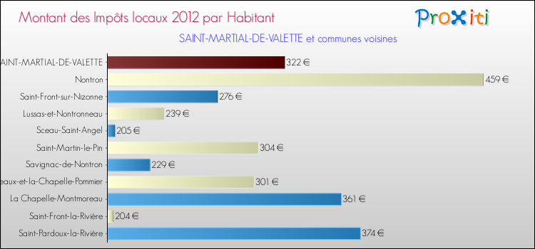 A noter : la valeur moyenne des impôts locaux dans les communes françaises similaires à Saint-Martial-de-Valette était de 277 € par habitant, en 2012.