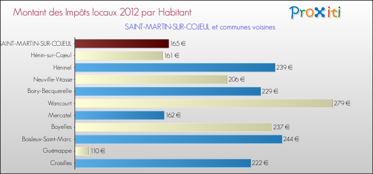 A noter : la valeur moyenne des impôts locaux dans les communes françaises similaires à Saint-Martin-sur-Cojeul était de 248 € par habitant, en 2012.