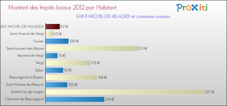 A noter : la valeur moyenne des impôts locaux dans les communes françaises similaires à Saint-Michel-de-Villadeix était de 272 € par habitant, en 2012.