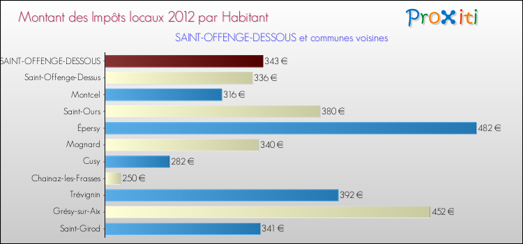 A noter : la valeur moyenne des impôts locaux dans les communes françaises similaires à Saint-Offenge-Dessous était de 277 € par habitant, en 2012.