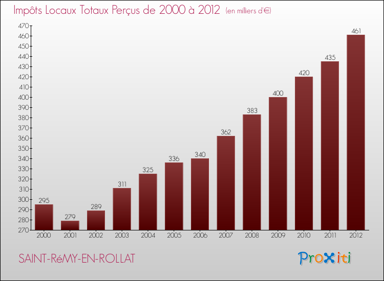Evolution des Impôts Locaux perçus par la commune de SAINT-RéMY-EN-ROLLAT de 2000 à 2012