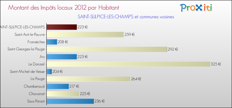 A noter : la valeur moyenne des impôts locaux dans les communes françaises similaires à Saint-Sulpice-les-Champs était de 242 € par habitant, en 2012.