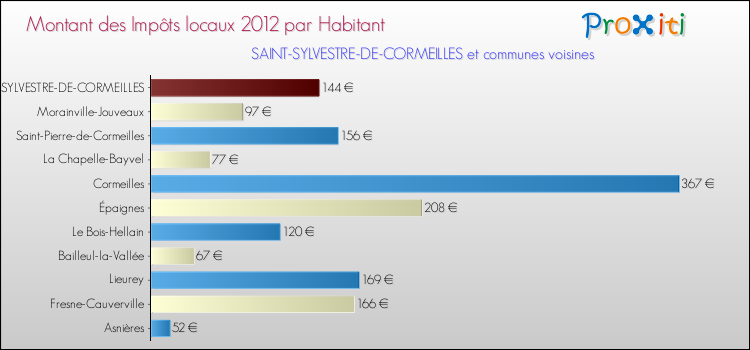 A Saint-Sylvestre-de-Cormeilles, les impôts locaux par habitant ont donc augmentés de 42.57 % entre 2000 et 2012.