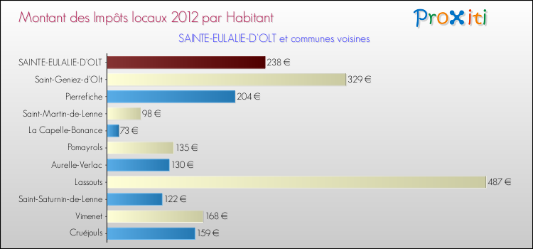 A Sainte-Eulalie-d'Olt, en 2012 les impôts locaux par habitant sont donc plus bas de 12.5 % que pour des communes similaires.