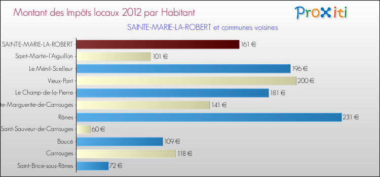 A Sainte-Marie-la-Robert, en 2012 les impôts locaux par habitant sont donc plus bas de 34.29 % que pour des communes similaires.