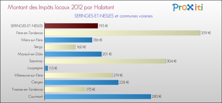 A Seringes-et-Nesles, en 2012 les impôts locaux par habitant sont donc plus bas de 28.31 % que pour des communes similaires.