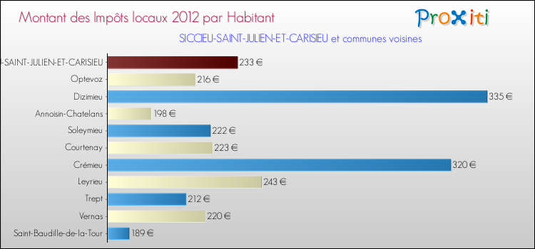A Siccieu-Saint-Julien-et-Carisieu, en 2012 les impôts locaux par habitant sont donc plus bas de 15.88 % que pour des communes similaires.