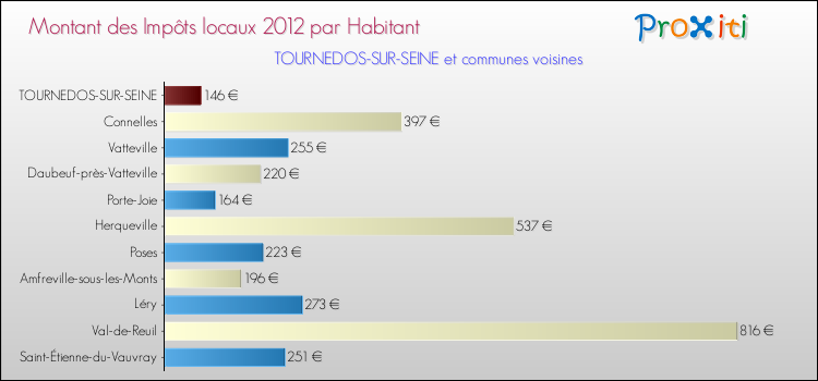 A noter : la valeur moyenne des impôts locaux dans les communes françaises similaires à Tournedos-sur-Seine était de 248 € par habitant, en 2012.