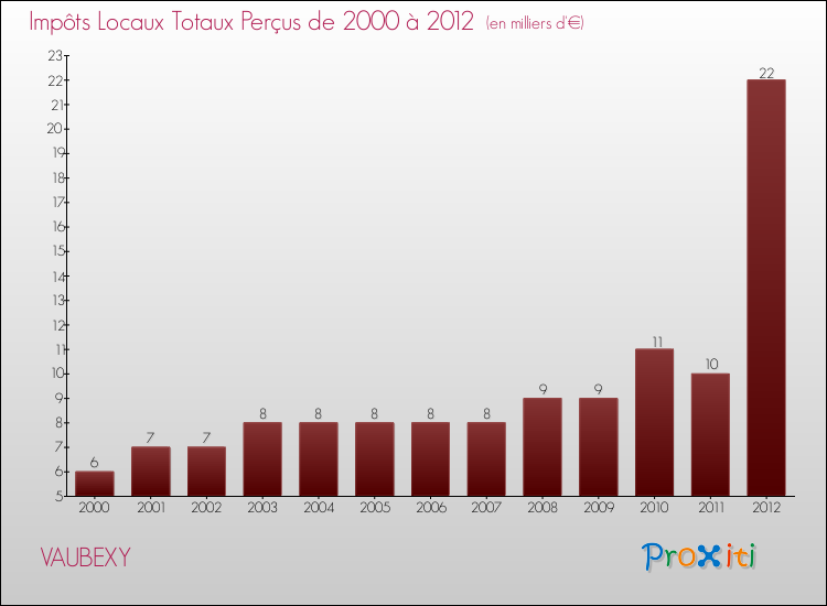 A Vaubexy, les impôts locaux par habitant ont donc augmentés de 228.3 % entre 2000 et 2012.