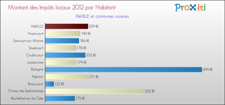 A Viéville, en 2012 les impôts locaux par habitant sont donc plus bas de 23.16 % que pour des communes similaires.