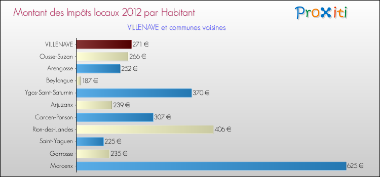 A Villenave, en 2012 les impôts locaux par habitant sont donc plus élevés de 11.98 % que pour des communes similaires.