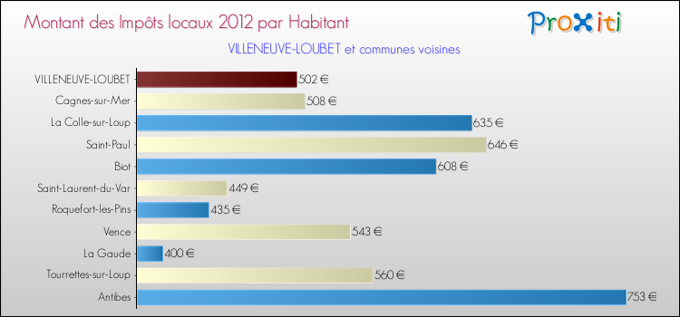 A Villeneuve-Loubet, en 2012 les impôts locaux par habitant sont donc plus élevés de 1.21 % que pour des communes similaires.