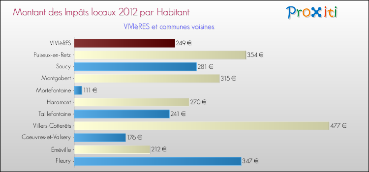 A Vivières, en 2012 les impôts locaux par habitant sont donc plus élevés de 2.89 % que pour des communes similaires.