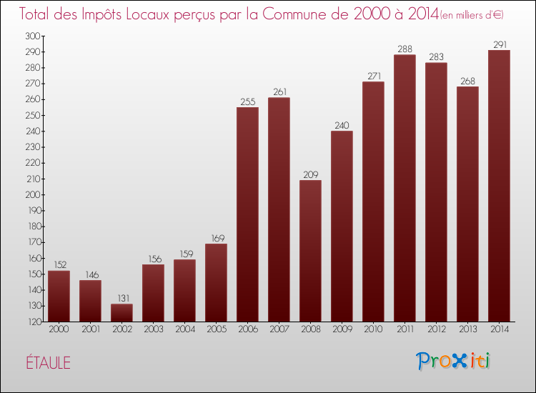 Evolution des Impôts Locaux perçus par la commune de ÉTAULE de 2000 à 2014