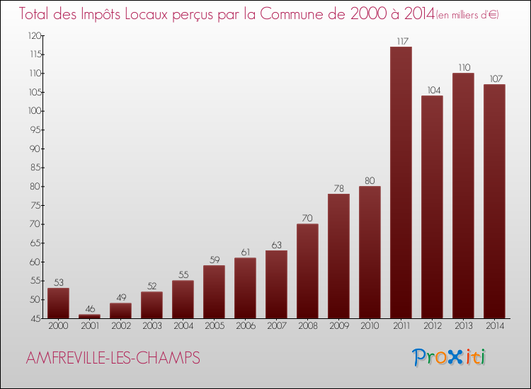 Evolution des Impôts Locaux pour AMFREVILLE-LES-CHAMPS de 2000 à 2014