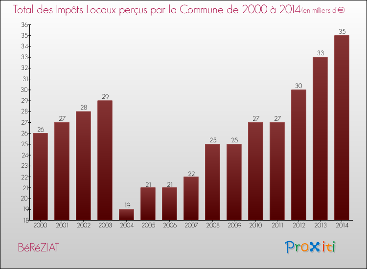 Evolution des Impôts Locaux perçus par la commune de BéRéZIAT de 2000 à 2014