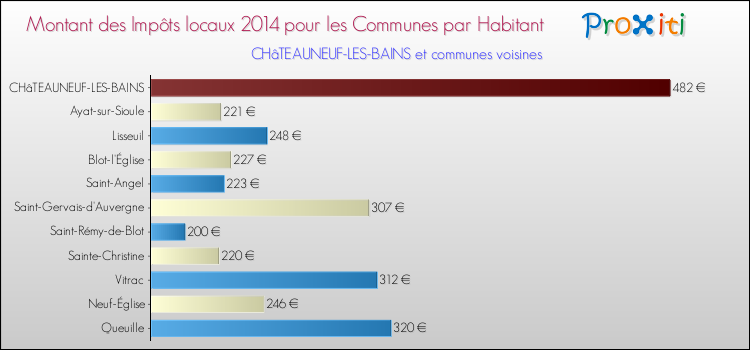 Comparaison des impôts locaux par habitant pour CHâTEAUNEUF-LES-BAINS et les communes voisines en 2014