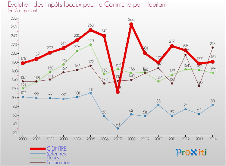 A Contre, les impôts locaux par habitant ont donc augmentés de 1.69 % entre 2000 et 2014.