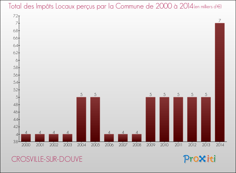 En 2014, le total des impôts locaux encaissés par la commune de Crosville-sur-Douve se montait à : 7 000 €.