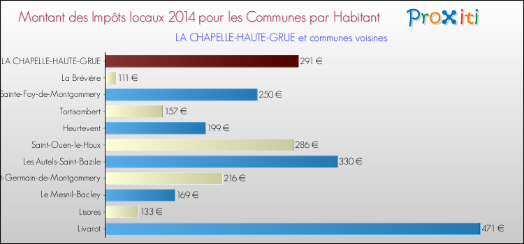 A noter : la valeur moyenne des impôts locaux dans les communes françaises similaires à La Chapelle-Haute-Grue était de 250 € par habitant, en 2014.