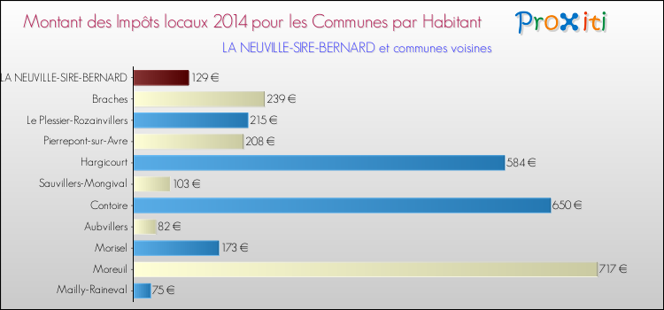 A La Neuville-Sire-Bernard, en 2014 les impôts locaux par habitant sont donc plus bas de 56.57 % que pour des communes similaires.