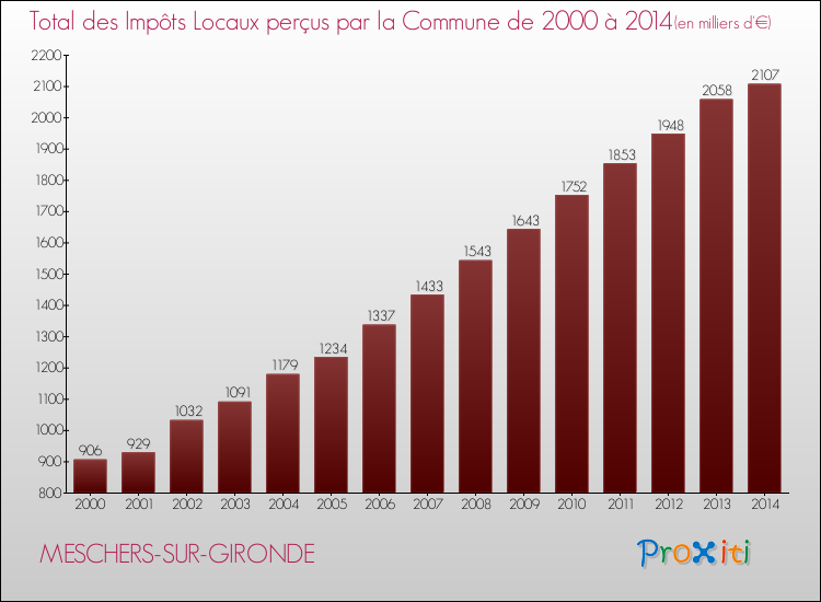 Evolution des Impôts Locaux perçus par la commune de MESCHERS-SUR-GIRONDE de 2000 à 2014