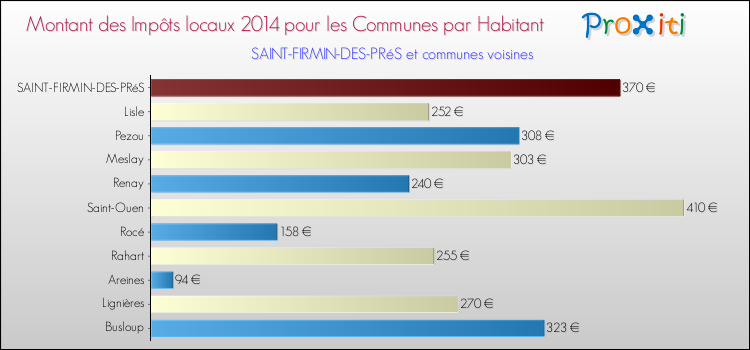 A noter : la valeur moyenne des impôts locaux dans les communes françaises similaires à Saint-Firmin-des-Prés était de 288 € par habitant, en 2014.