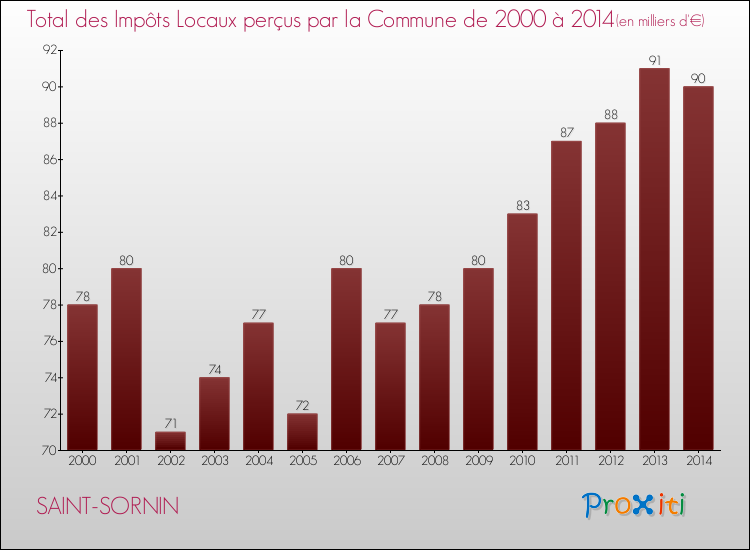 Evolution des Impôts Locaux perçus par la commune de SAINT-SORNIN de 2000 à 2014