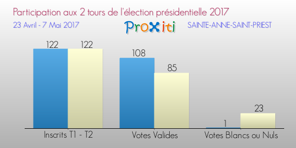 Sur 122 personnes inscrites au 1er tour à Sainte-Anne-Saint-Priest, 109 se sont déplacées pour mettre leur bulletin dans l'urne, et 13 ne sont pas venues voter.