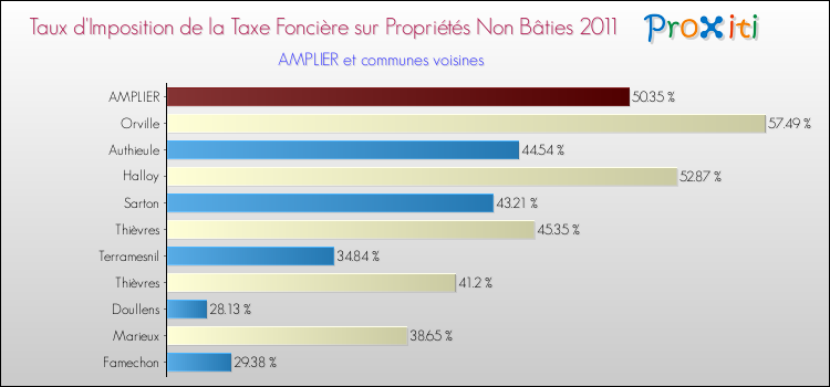 A noter : la valeur moyenne de ce taux de taxe foncière sur le non bâti dans les communes françaises similaires à Amplier était de 40.67 %, en 2011.