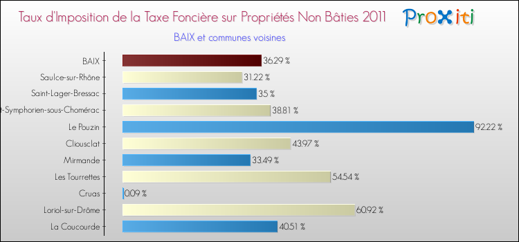 En 2011, le taux de la taxe foncière sur le non bâti vôté par le conseil municipal de Baix était de : 36.29 %.