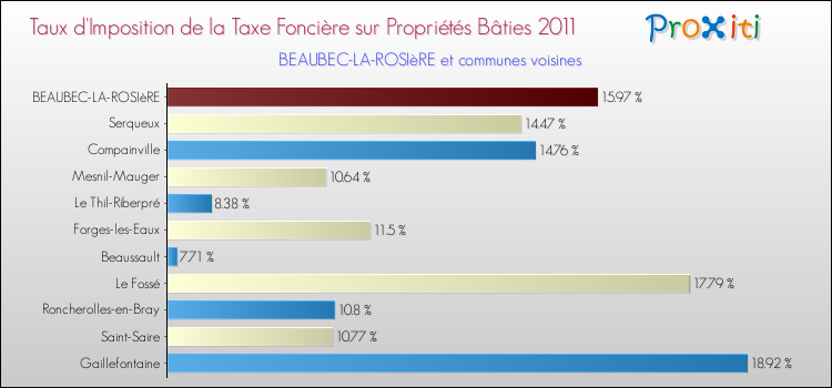 A noter : la valeur moyenne de ce taux de taxe foncière sur le bâti dans les communes françaises similaires à Beaubec-la-Rosière était de 11.86 %, en 2011.