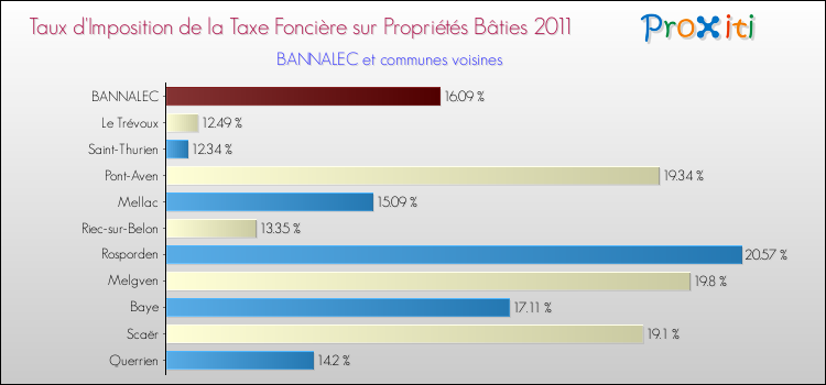 A noter : la valeur moyenne de ce taux de taxe foncière sur le bâti dans les communes françaises similaires à Bannalec était de 20.88 %, en 2011.