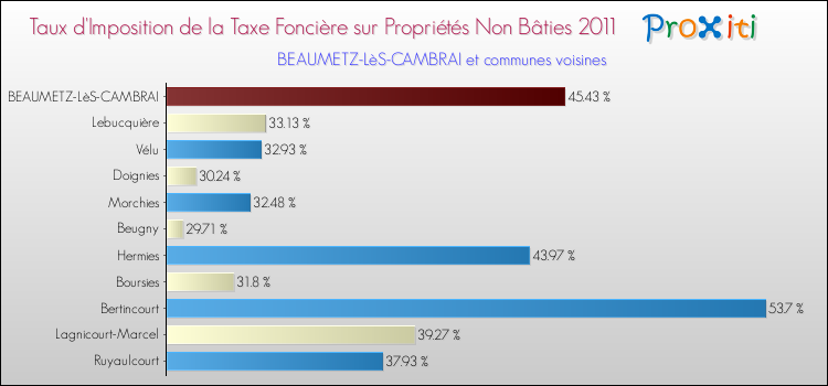 A noter : la valeur moyenne de ce taux de taxe foncière sur le non bâti dans les communes françaises similaires à Beaumetz-lès-Cambrai était de 46.03 %, en 2011.