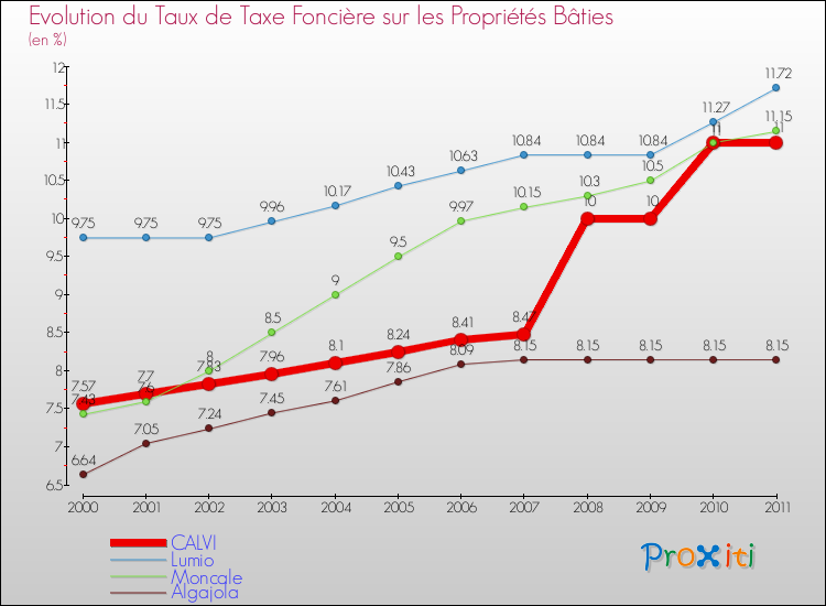 A Calvi, le taux de taxe foncière sur le non bâti a donc augmenté de 11.76 % entre 2000 et 2011.