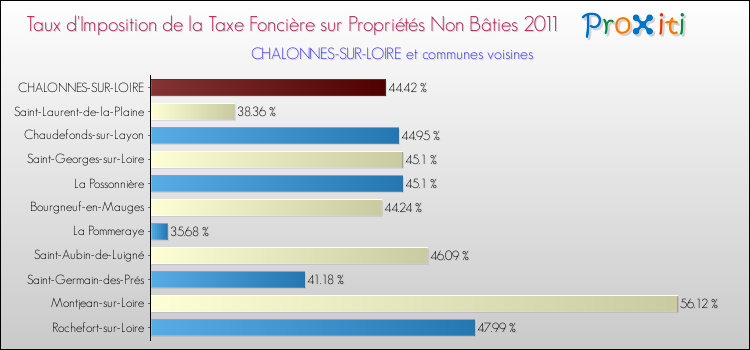 A noter : la valeur moyenne de ce taux de taxe foncière sur le non bâti dans les communes françaises similaires à Chalonnes-sur-Loire était de 58.01 %, en 2011.